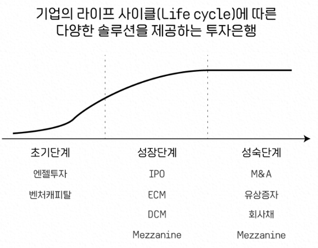 * 기업의 Life Cycle에 따라 투자은행이 제공할 수 있는 솔루션