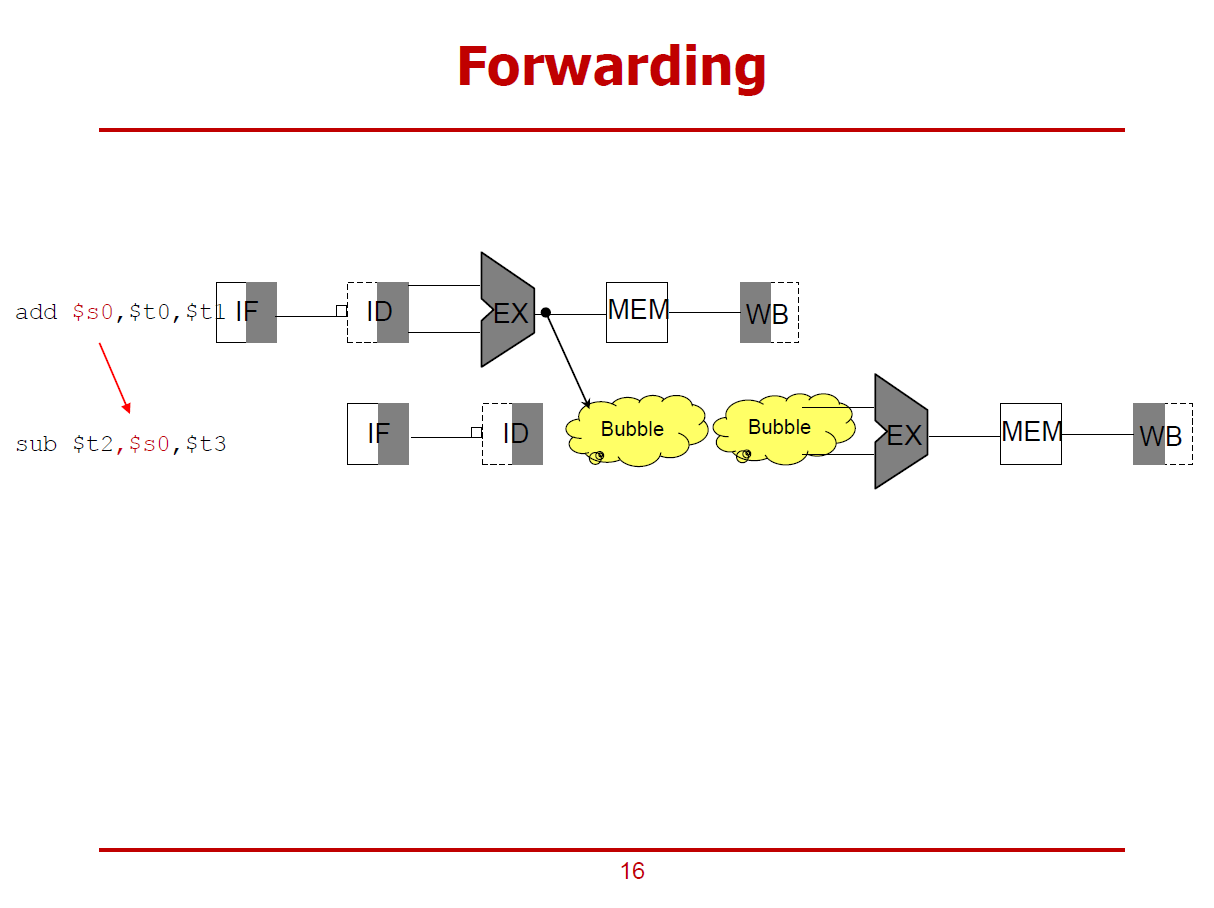 - Stall(Bubble)의 단점을 보완한 해결책으로 Forwarding(Bypass)가 있다.