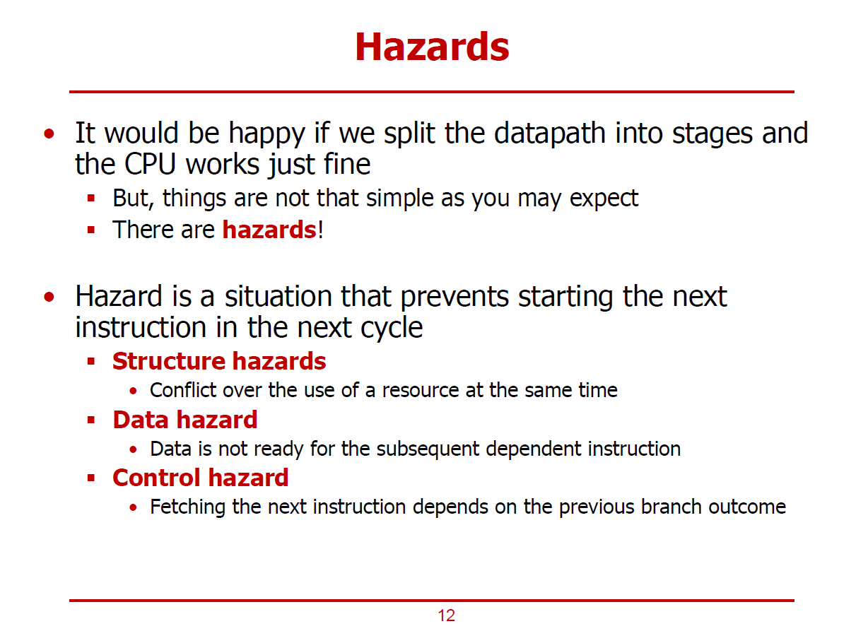 - 즉, 파이프라이닝이 제대로 진행되지 않는 현상을 해저드라고 한다.