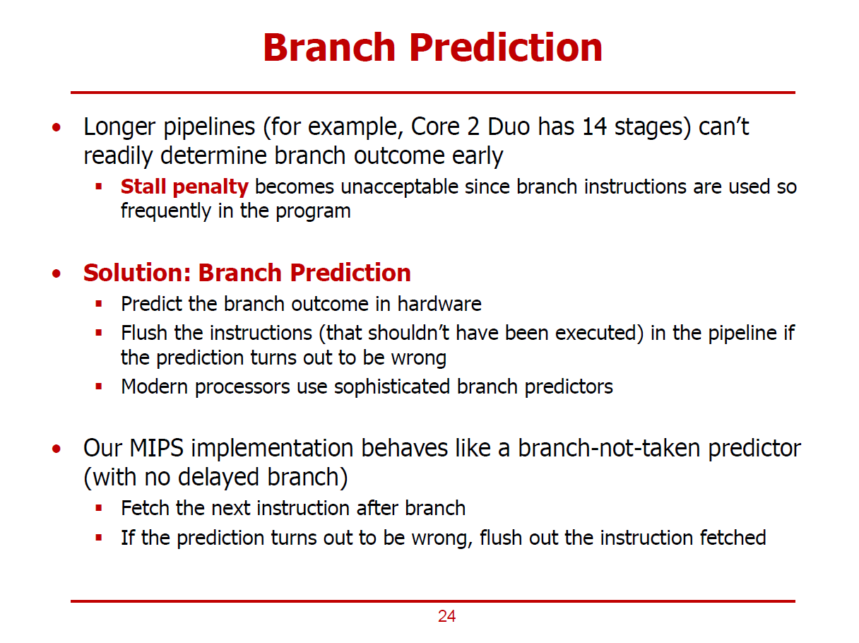 - Prediction에 실패할 경우, Flush(처리중인 명령어의 수행 결과를 취소함)를 수행하게 된다.
