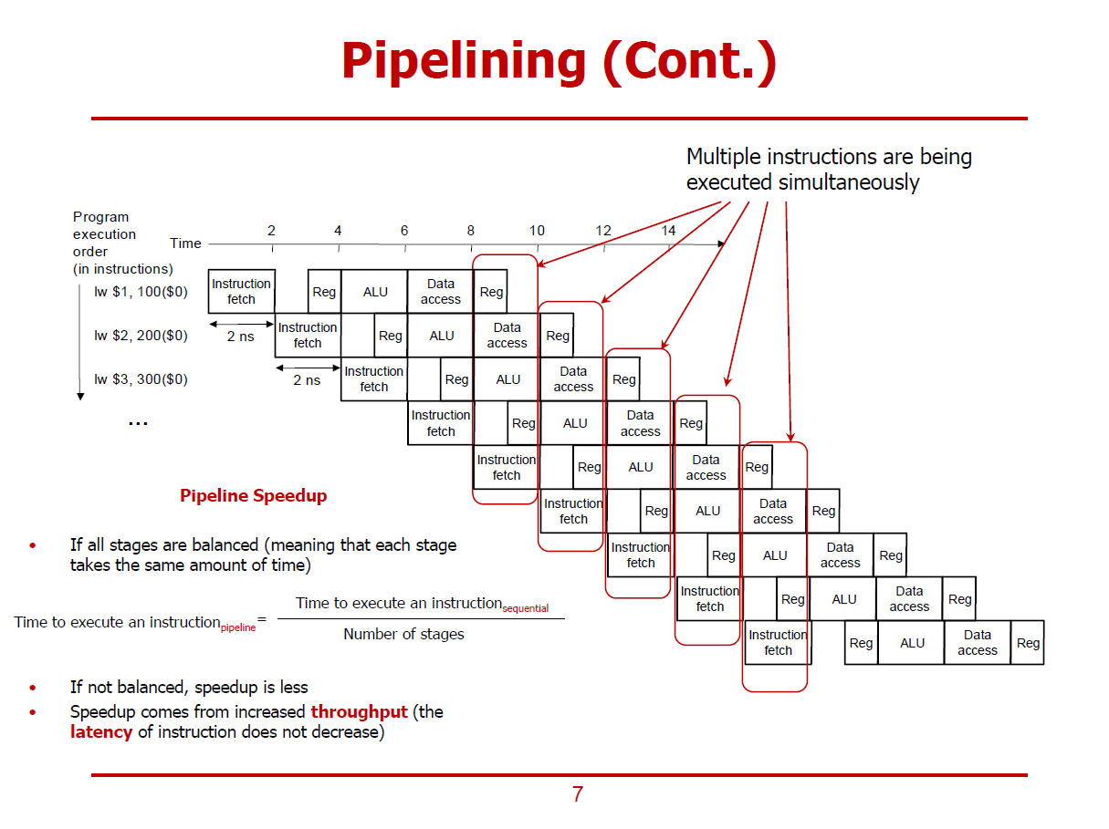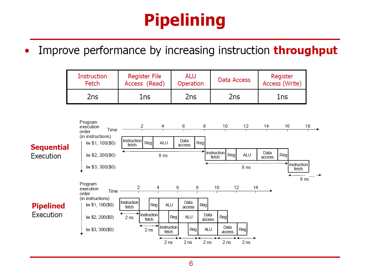 ※ 여기서, Time to execute an Instruction은 Latency를 의미하는 개념이 아니다. 단순히, 명령어를 처리하는 속도를 의미한다.