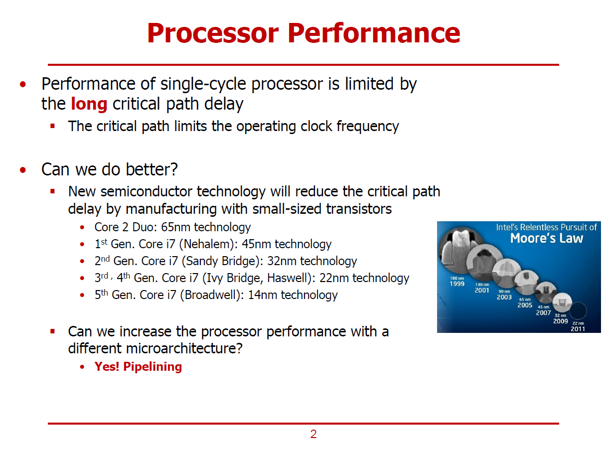 - Critical Path를 줄이는 가장 전통적이고 단순한 방법으로는 Moore's Law에 의존하는 방법이 있다.