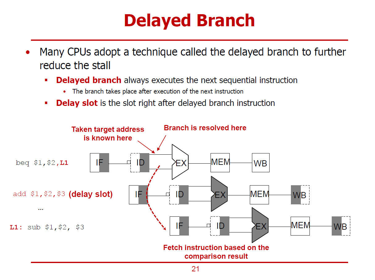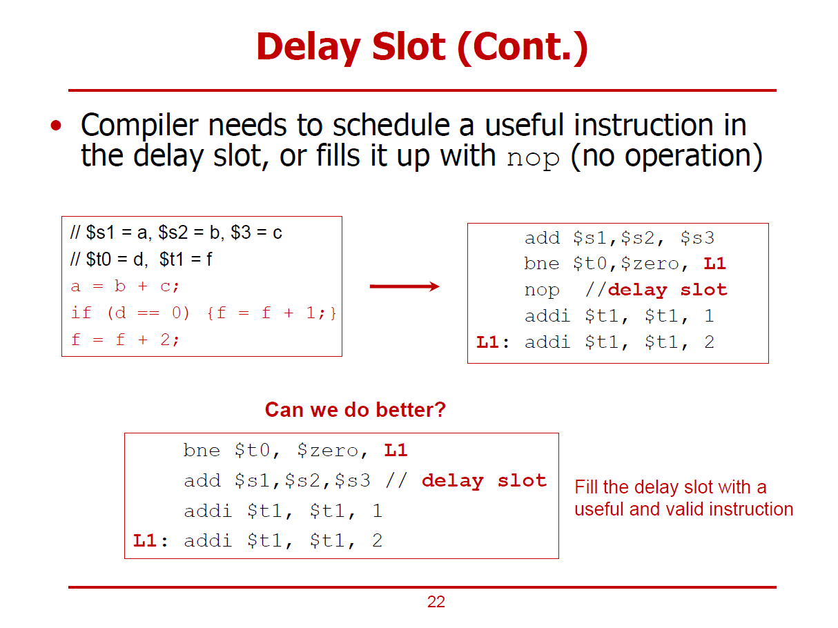 - 분기 명령어 바로 다음 명령어가 위치하는 부분을 Delay Slot이라고 한다.