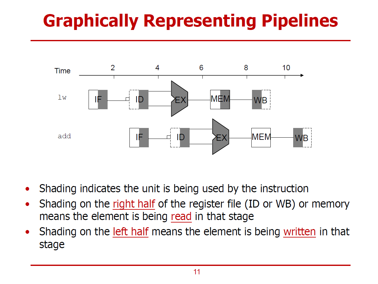 - 데이터 읽기 연산을 수행하는 Stage는 오른쪽 Half에 Shading을 한다.