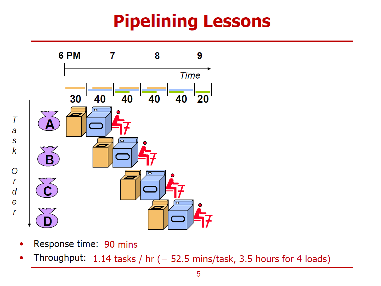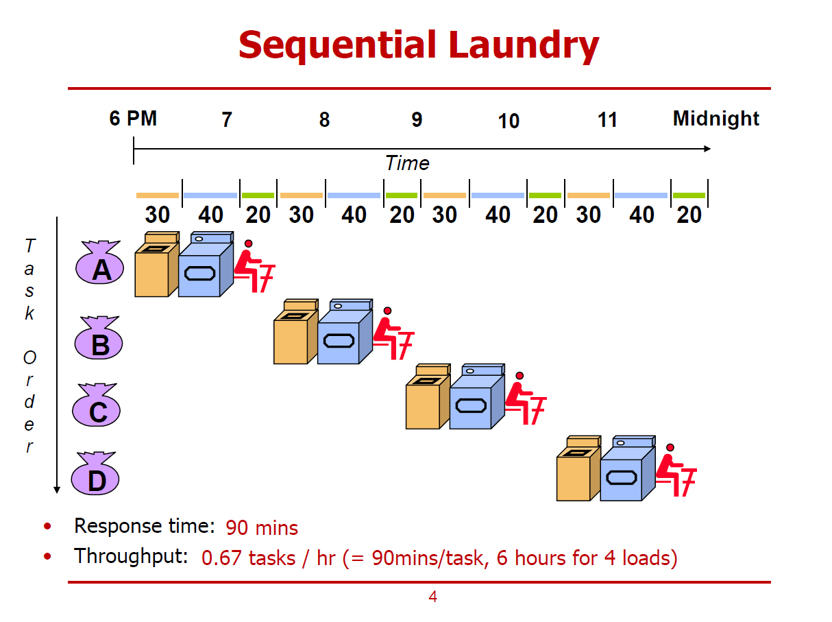 - Sequential한 Laundry처리 방식 대신, Pipelining을 적용한 경우이다.