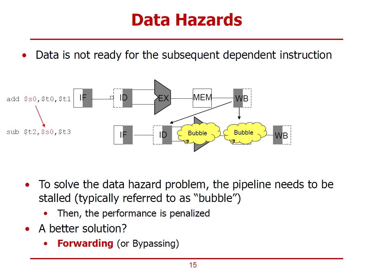 - Stalling(Bubbling)보다 나은 해결책으로 Forwarding(Bypassing)이 있다.