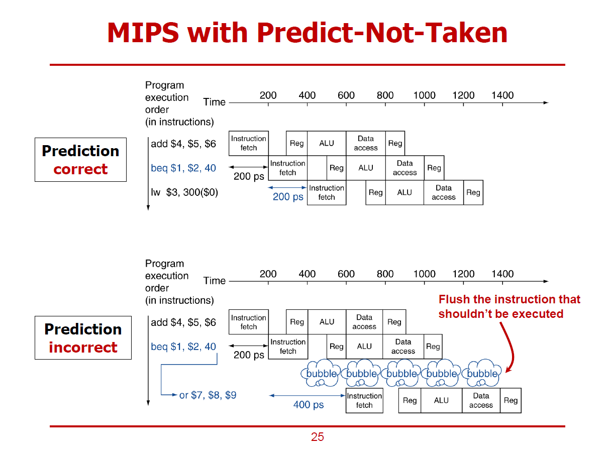 - 예측에 실패했을 경우, beq 명령어 다음에 실행되던 명령어가 Flush된다.