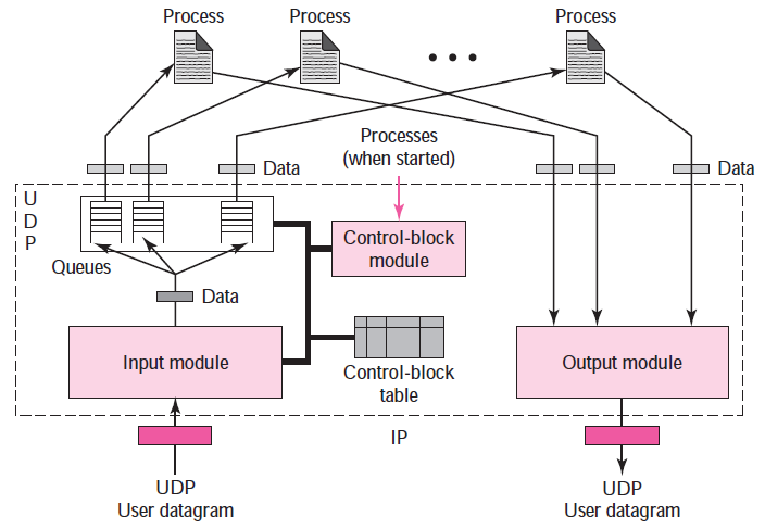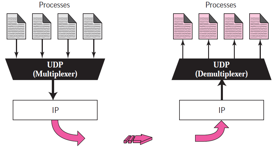 - UDP는 포트 번호를 이용하여 프로세스 간 통신을 지원한다.