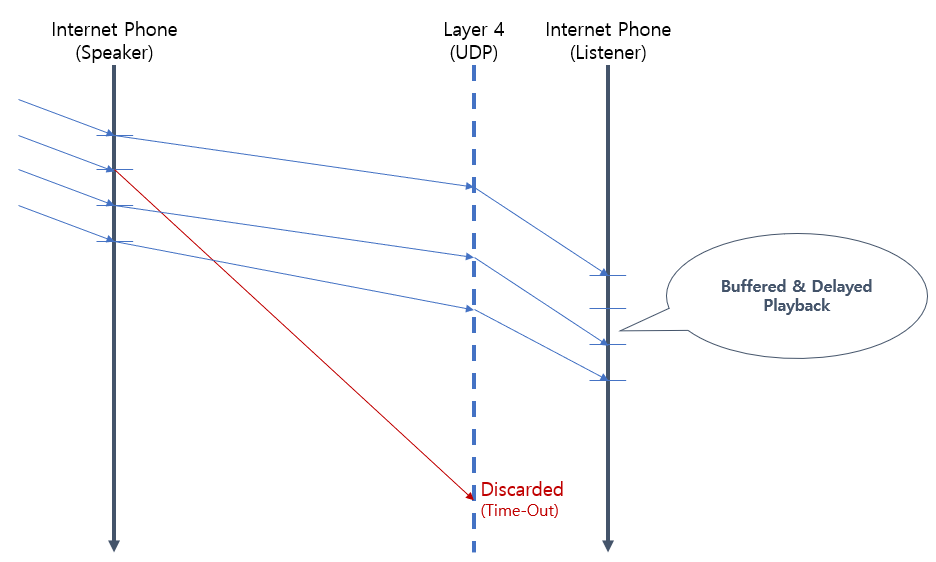 - 인터넷 폰끼리 주고받는, Sampling된 Voice Data는 일정한 시간 간격을 두고 전송된다.
