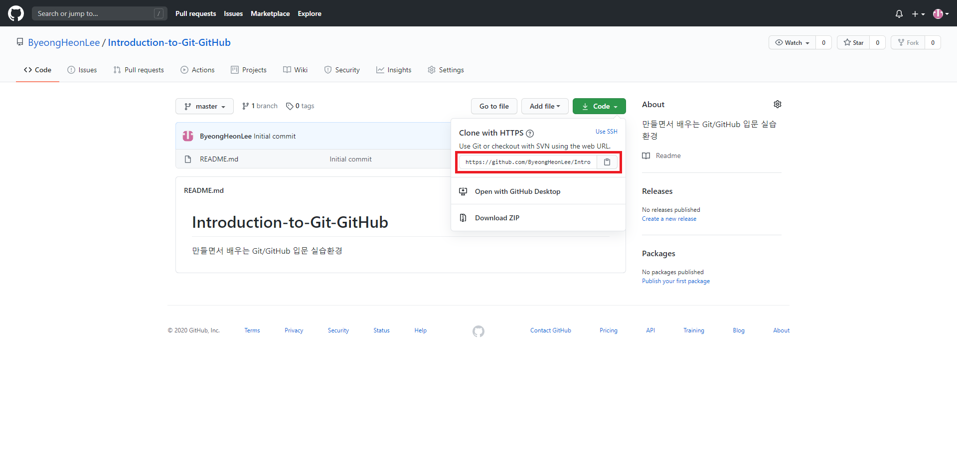 $ git clone https://github.com/ByeongHeonLee/Introduction-to-Git-GitHub.git