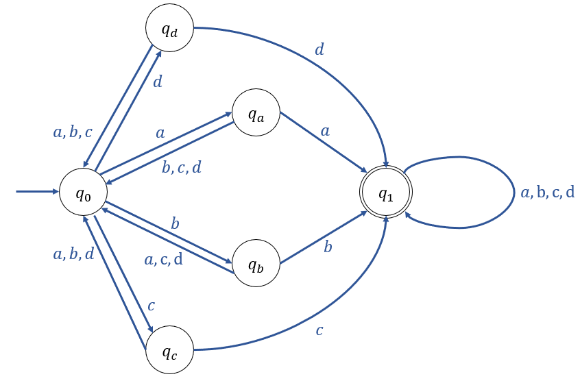 - Label "\(q_{0}\)"를 가진 정점은 Initial Vertex(시작 정점)이다.