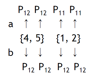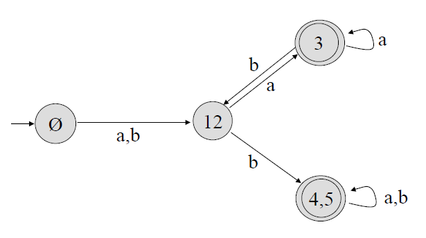 (Step 2를 통해, \(P_1\)에선 4, 5가 전이 결과가 같고, \(P_2\)에선 1, 2가 전이 결과가 같은 것을 볼 수 있다.)