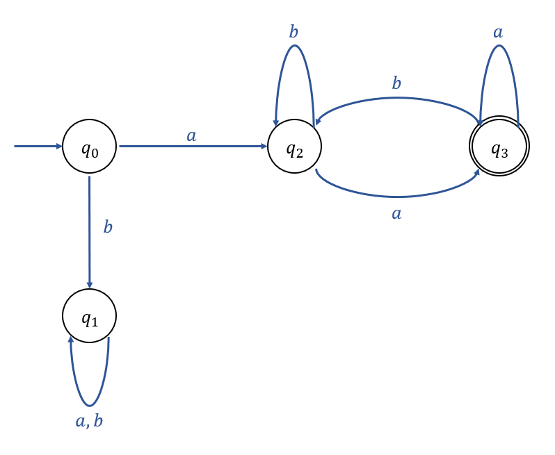 따라서, \(\delta^*(q_0, ab) = \delta(q_1, b) = q_2\) 로 나타낼 수도 있다.