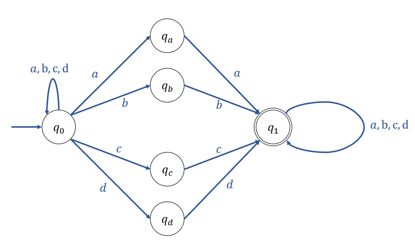 - DFA는 현재 State와 현재 Input Symbol에 의해 한 State에서 다른 State로 전이한다.