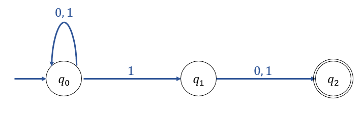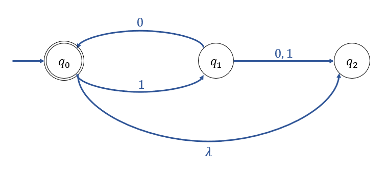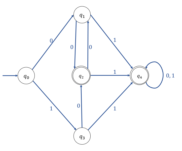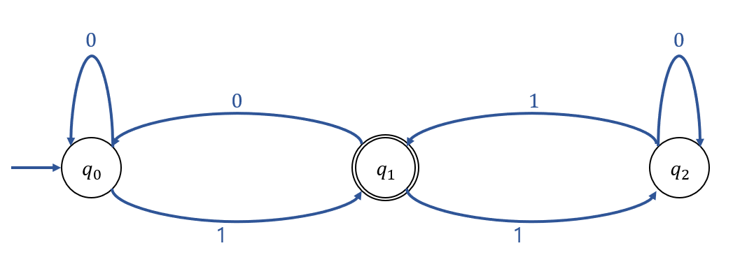 \delta(q_1, 0) = q_0, \qquad \delta(q_1, 1) = q_2, \\