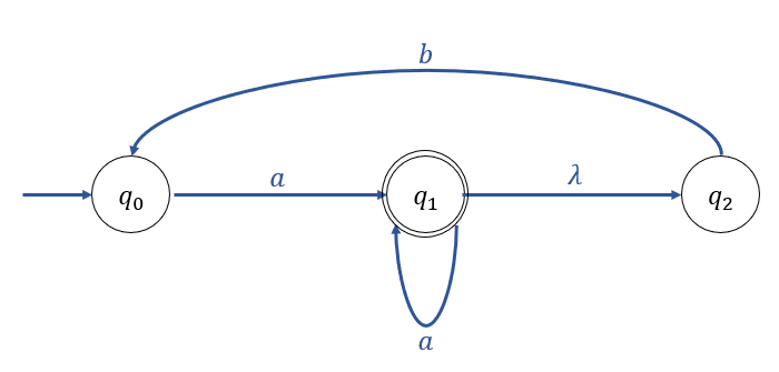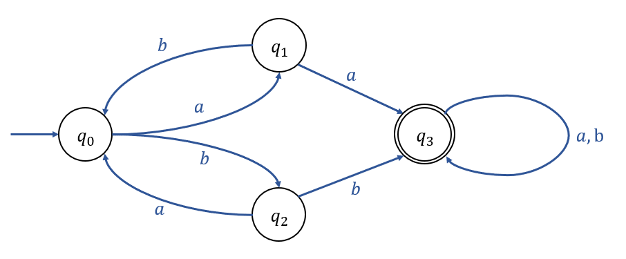 ex) \(\delta(q_0, a) = q_1\) 이고, \(\delta(q_1, b) = q_2\) 이면, \(\delta^*(q_0, ab) = q_2\) 이다.