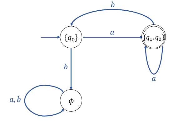 ex) \(\delta^*(q_0, ab) = \delta( \delta^*(q_0, a), b)\) 이고,