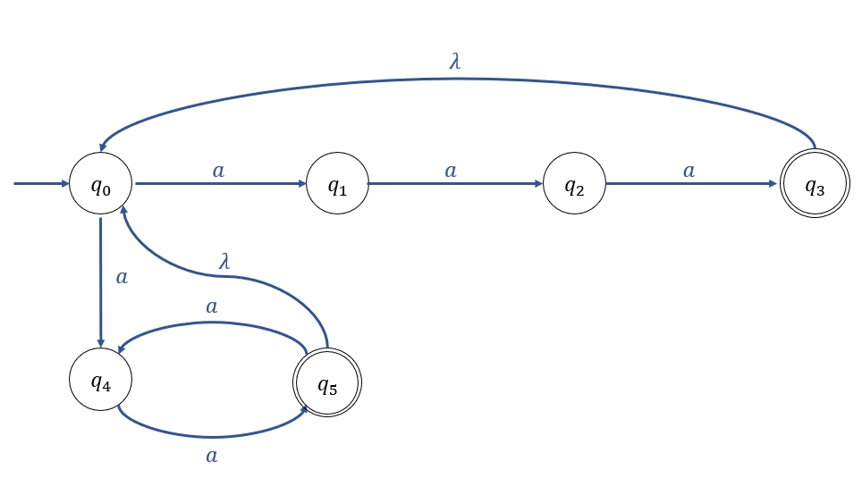 \(\delta^*(q, \lambda) = q, \qquad\) (기본적으로, DFA에는 \(\lambda\) Transition이 정의되지 않는다.)