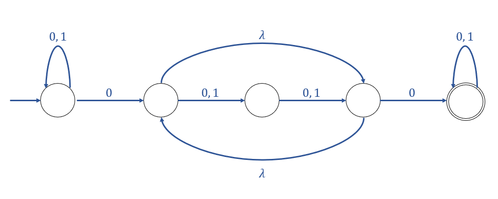 - \(\delta(q_2, 0) = q_3, \delta(q_4, 0) = q_4\)에 의해,
