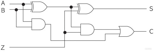 - 세 개의 입력 A, B, Z와 두 개의 출력 Carry(C), Sum(S)을 가진다.