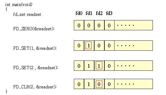 - select()가 리턴되면, readfds에서 Ready 상태에 있는 File Descriptor들을 제외한 모든 Descriptor들은 Clear된다.