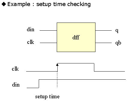 ASSERT(din'last_event >= setup_time) -- setup time 이전에 데이터가 입력되어 있어야 한다.