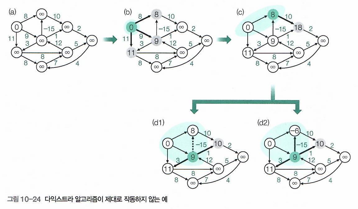 음수의 가중치가 새로 나타나 최단 경로를 업데이트해야 하는 상황에 대응하지 못한다.