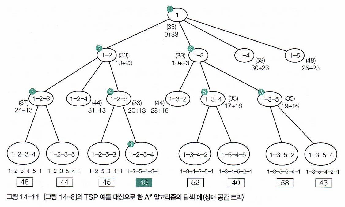 ※ Branch and Bound 방법에서와 달리, A* 알고리즘에서는 임의의 Leaf가 방문되는 순간 알고리즘이 종료된다.