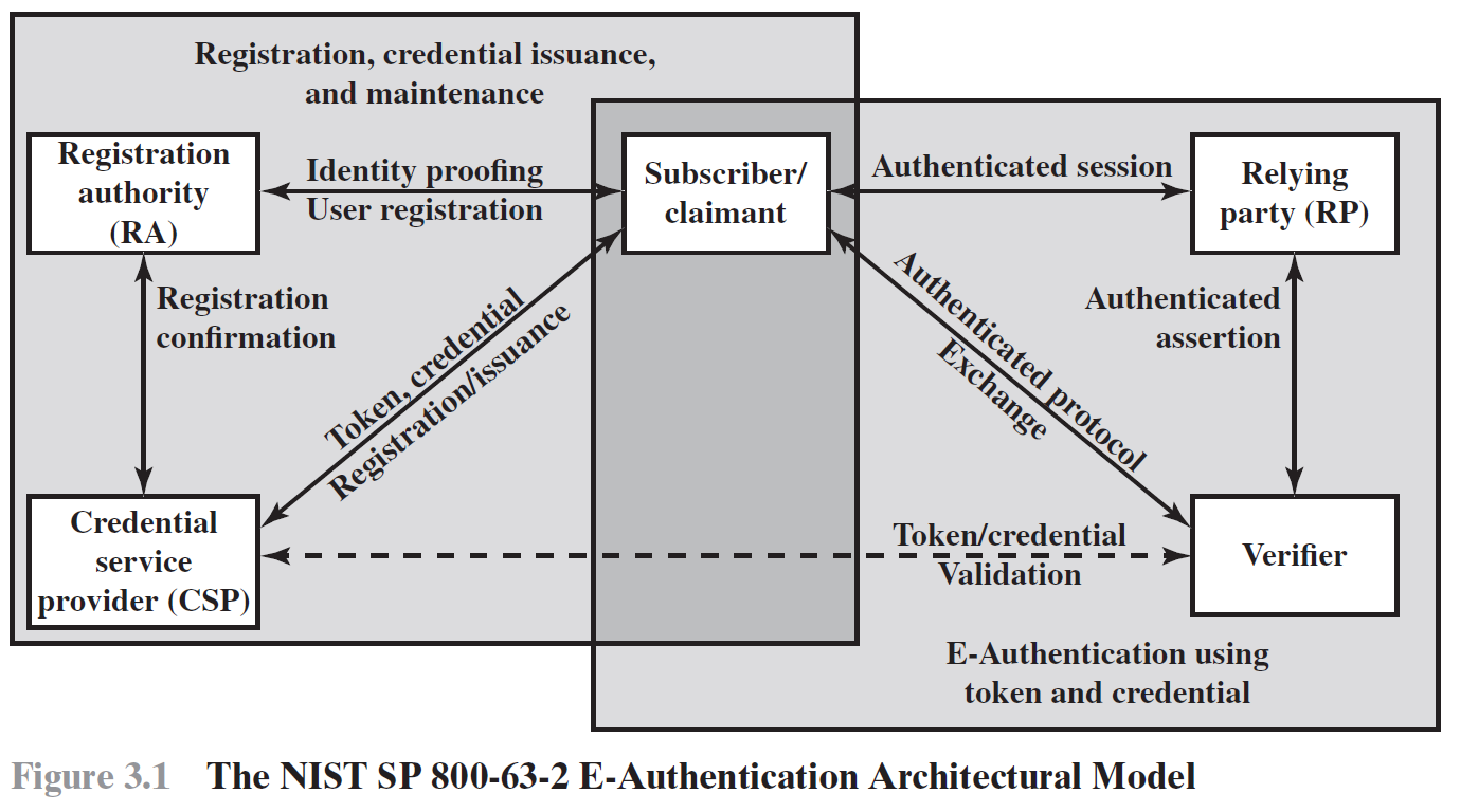 (NIST SP 800-63-2 전자 사용자 인증 구조 모델)