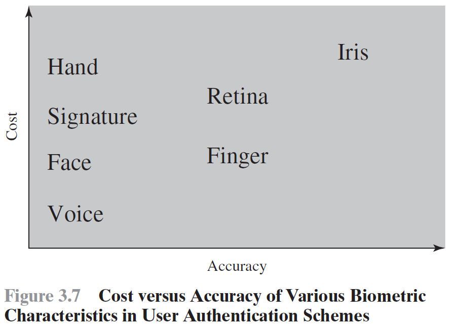 - Typing Patterns (Keystroke Dynamics) - Vein Patterns - Hand Geometry - Retinal Pattern - Facial Thermograms - Ear Shape - DNA - 위 Biometric들은 높은 Cost로 인해 일반화되기 어렵다는 단점이 있다. |