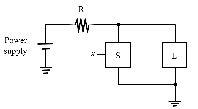 스위치가 열리면(x=0) 전구에 불이 들어온다(L=1).
