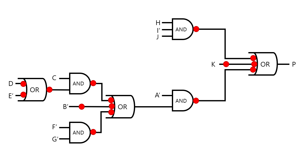 - 모든 소자를 NAND Gate로 구성하기 위해, 곳곳에 Inverter를 추가한다.