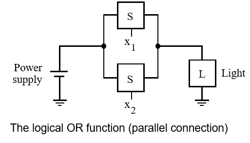 \(L(x_1 , x_2) =\begin{cases} 1, & \mbox{if }x_1 \mbox{ or } x_2 \mbox{ is 1}\\0, & \mbox{otherwise}\end{cases}\)