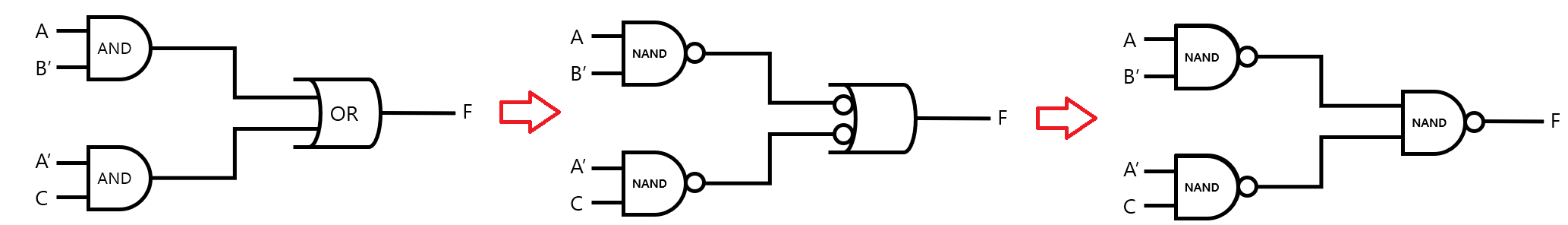 - NAND Gate로만 설계된 회로에서의 최종 출력값은 SOP Form으로 도출된다.
