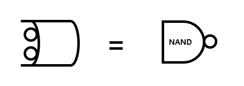 \(A \; \mathrm{NAND} \; B = (AB)' = A' + B'\)