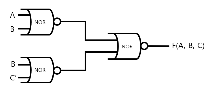 - NOR Gate로만 설계된 회로에서의 최종 출력값은 POS Form으로 도출된다.