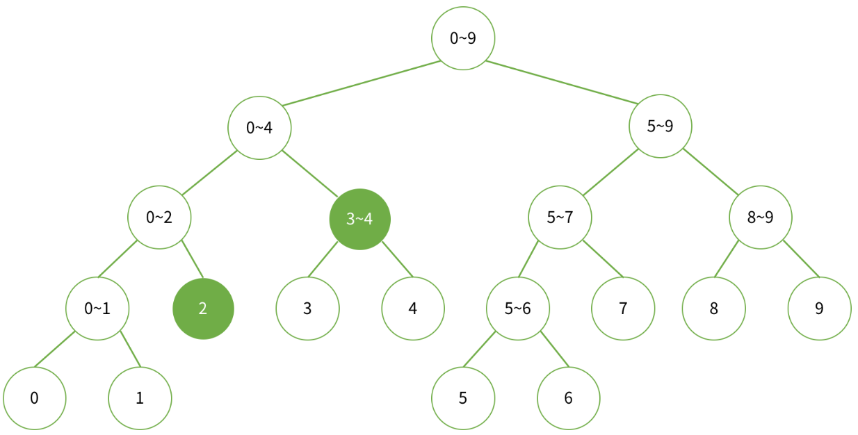 | a[0...9]를 구할때 필요한 세그먼트 트리의 노드 |